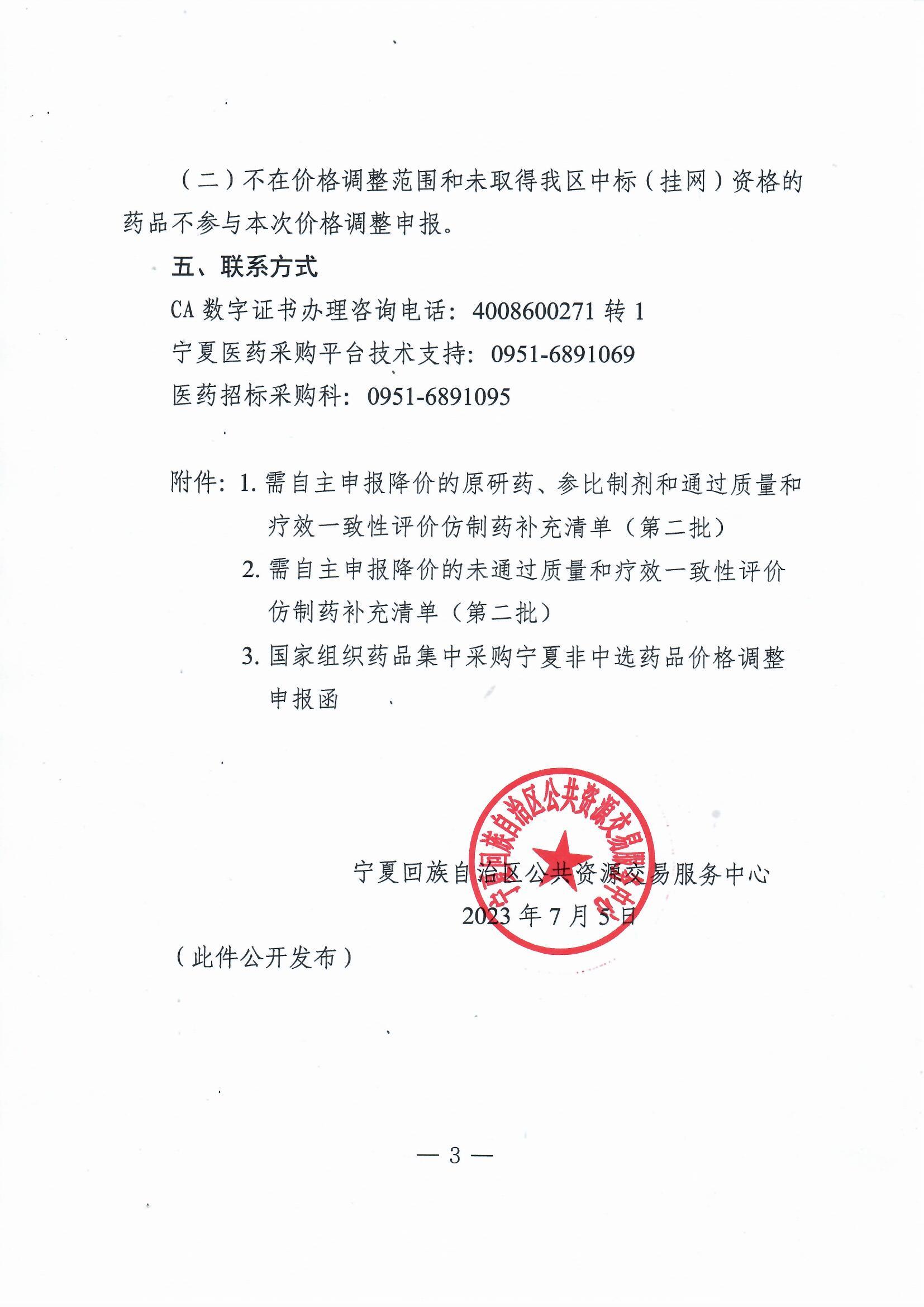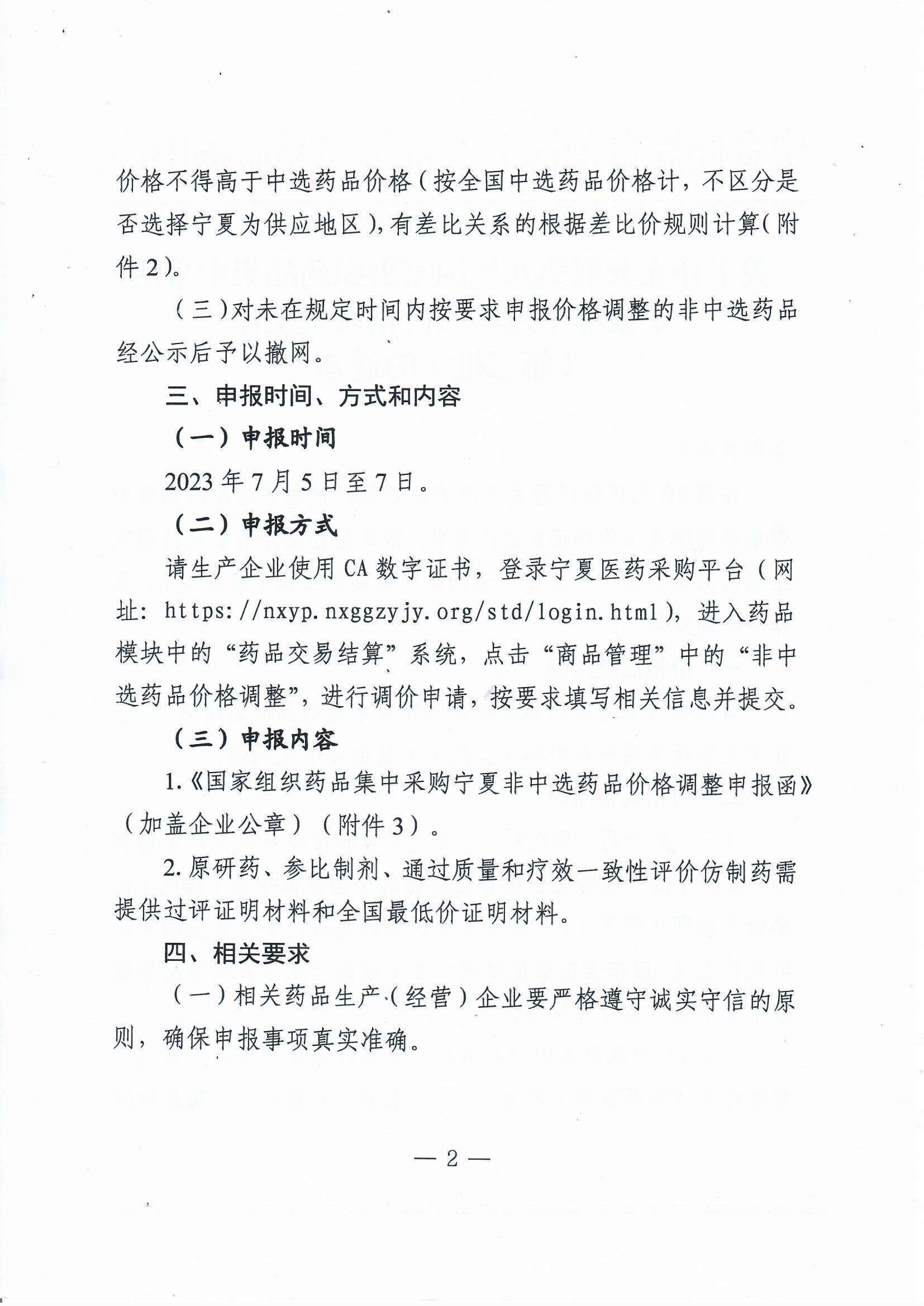 1.《国家组织药品集中采购宁夏非中选药品价格调整申报函》(加盖企业公章)(附件3)。