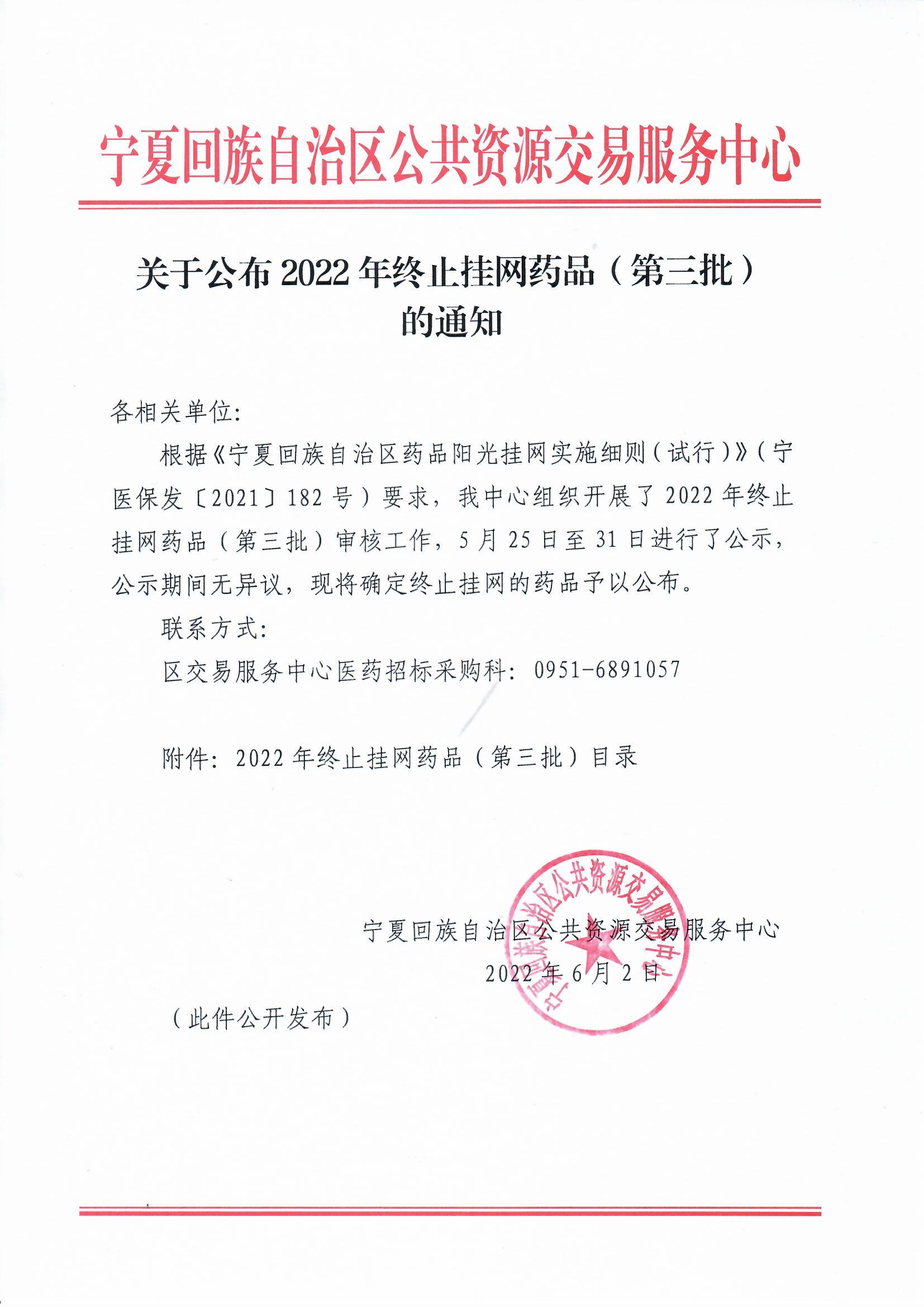 【宁夏】宁夏回族自治区关于公布2022年终止挂网药品(第三批) 的通知