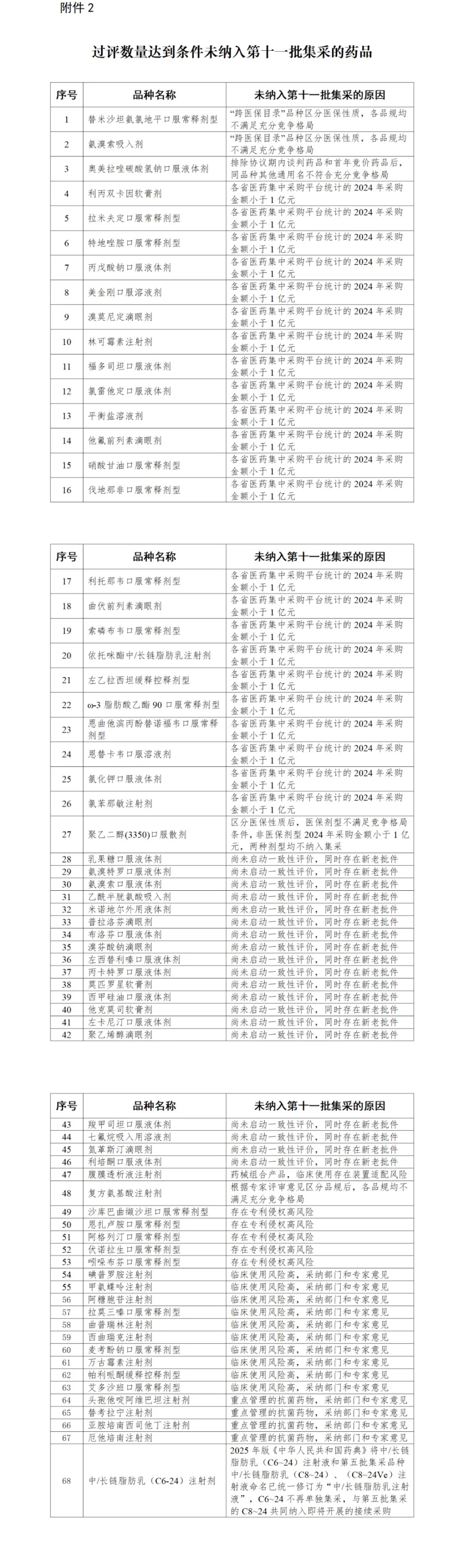 附件2.过评数量达到条件未纳入第十一批集采的药品