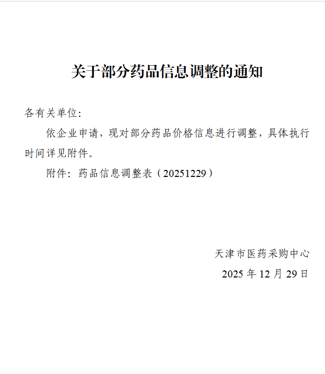 【天津】天津市关于部分药品信息调整的通知(20251229)