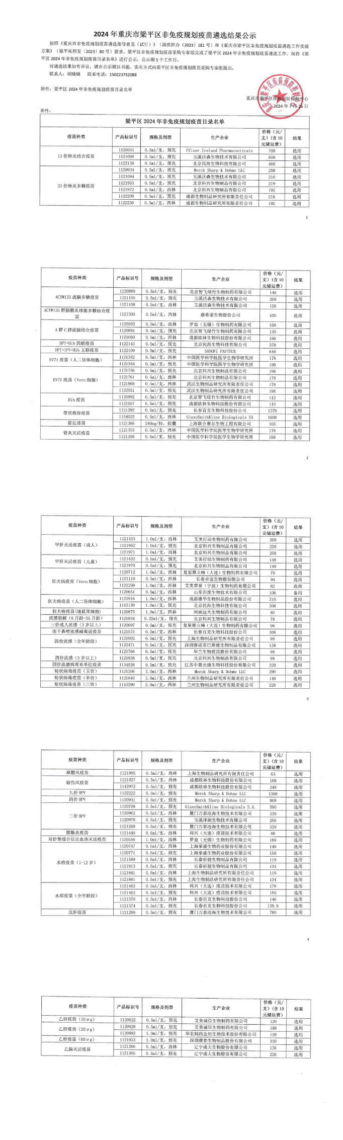 【重庆】2024年重庆市梁平区非免疫规划疫苗遴选结果公示