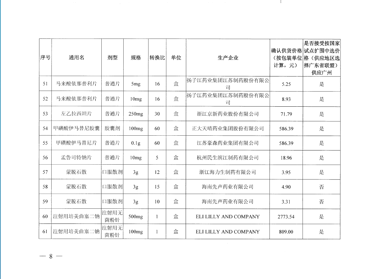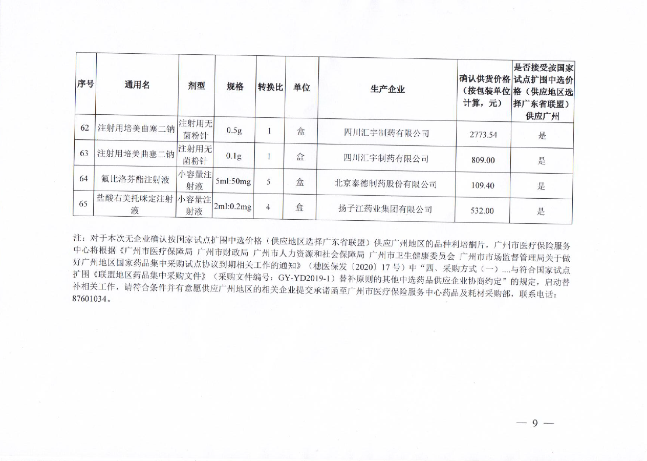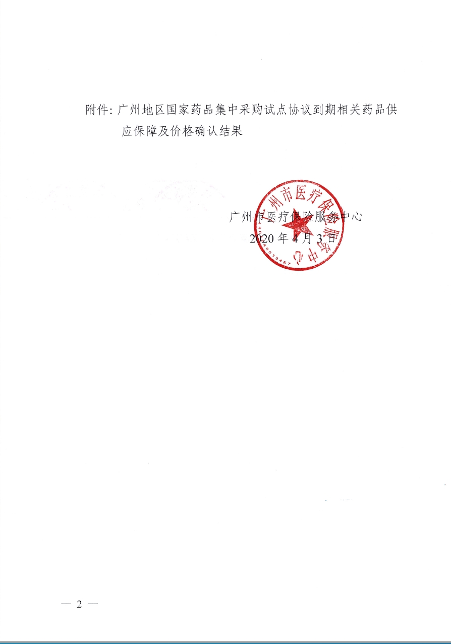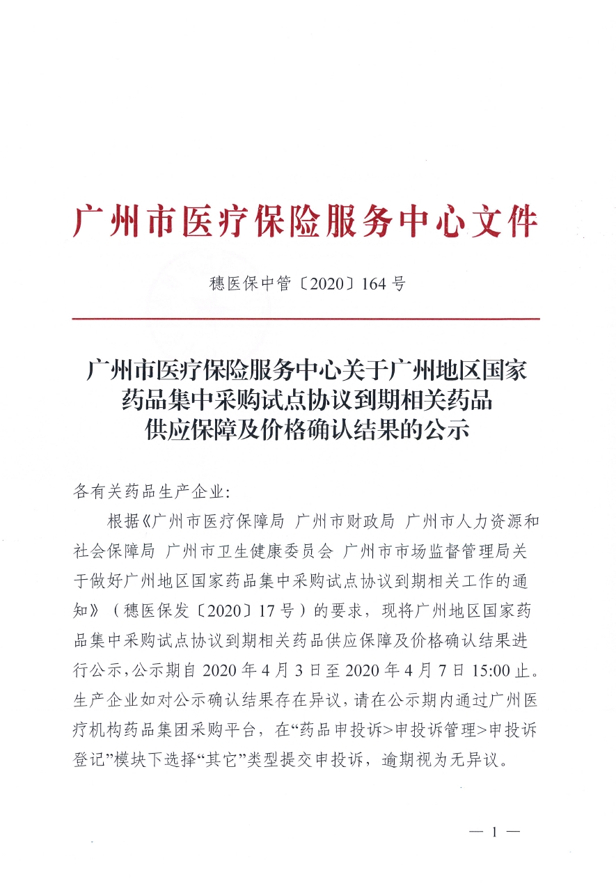 【广州】广东省广州市医疗保险服务中心关于广州地区国家药品集中采购试点协议到期相关药品供应保障及价格确认结果的公示