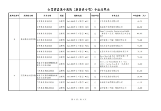 【泸州】四川省泸州市医疗保障局全国药品集中采购(胰岛素专项)中选结果表