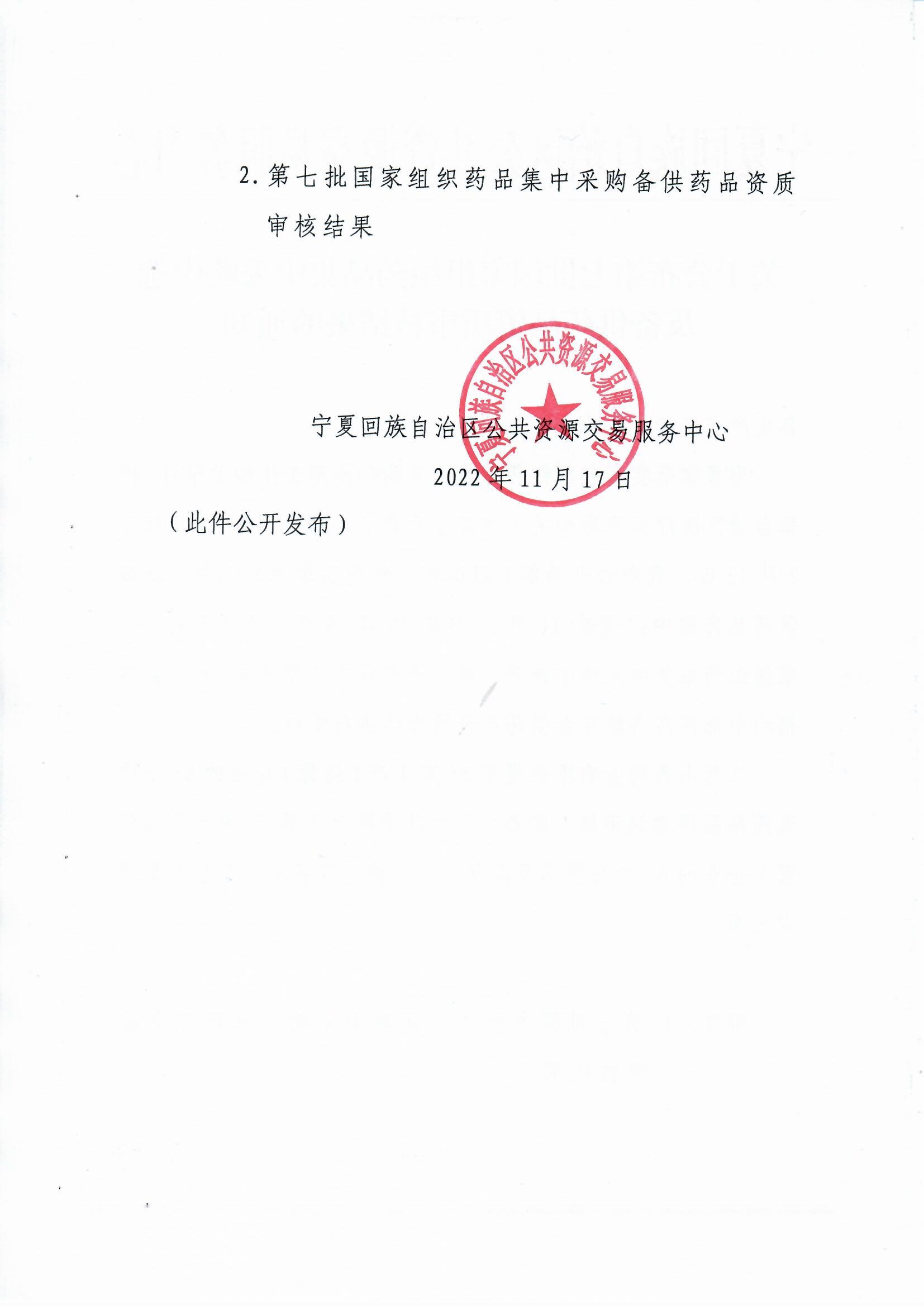 2.第七批国家组织药品集中采购备供药品资质审核结果