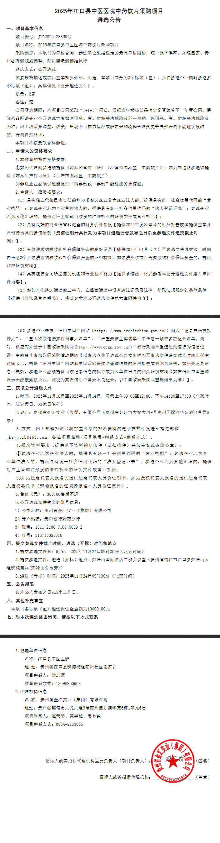 【铜仁市江口县中医医院】贵州省铜仁市2025年江口县中医医院中药饮片采购项目遴选公告