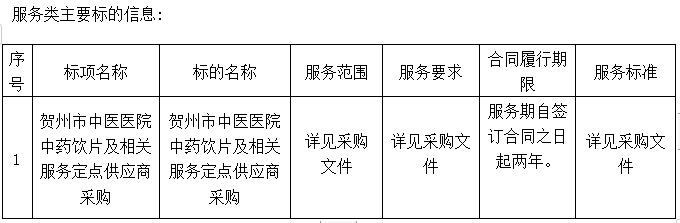 二、项目名称:贺州市中医医院中药饮片及相关服务定点供应商采购