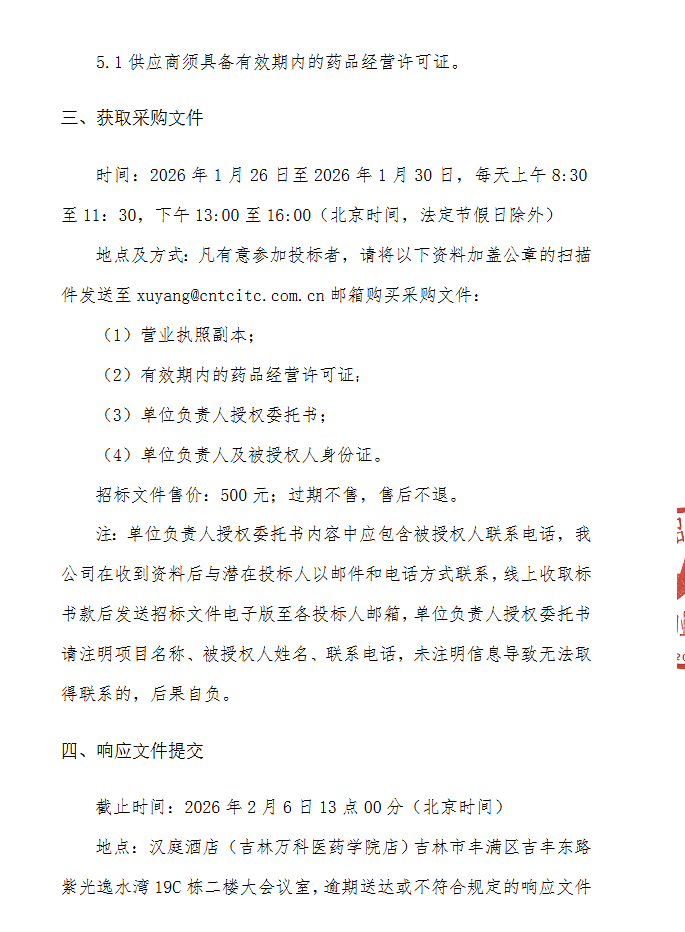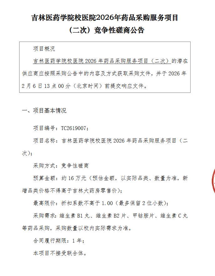 【吉林医药学院】吉林医药学院校医院2026年药品采购服务项目-招标公告(二次)