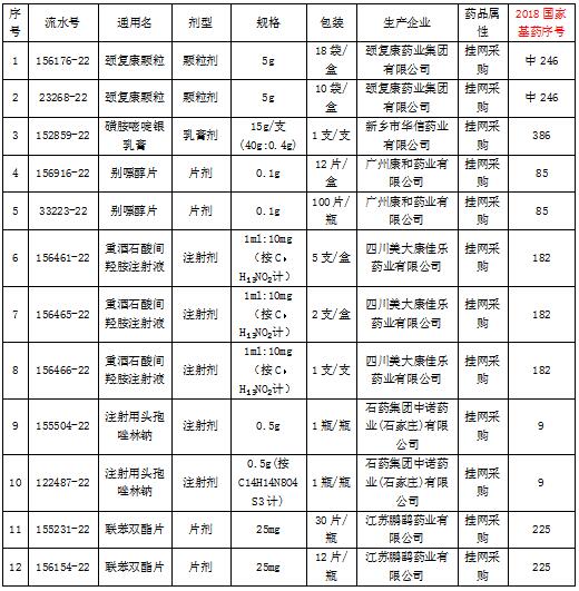 根据省卫生健康委员会《关于对2018年版国家基本药物序号标识有关事项的函》,现对药品交易和招标系统部分药品目录予以相应国家基本药物序号标识(见下表),请相关医疗机构及时调整采购数据信息。