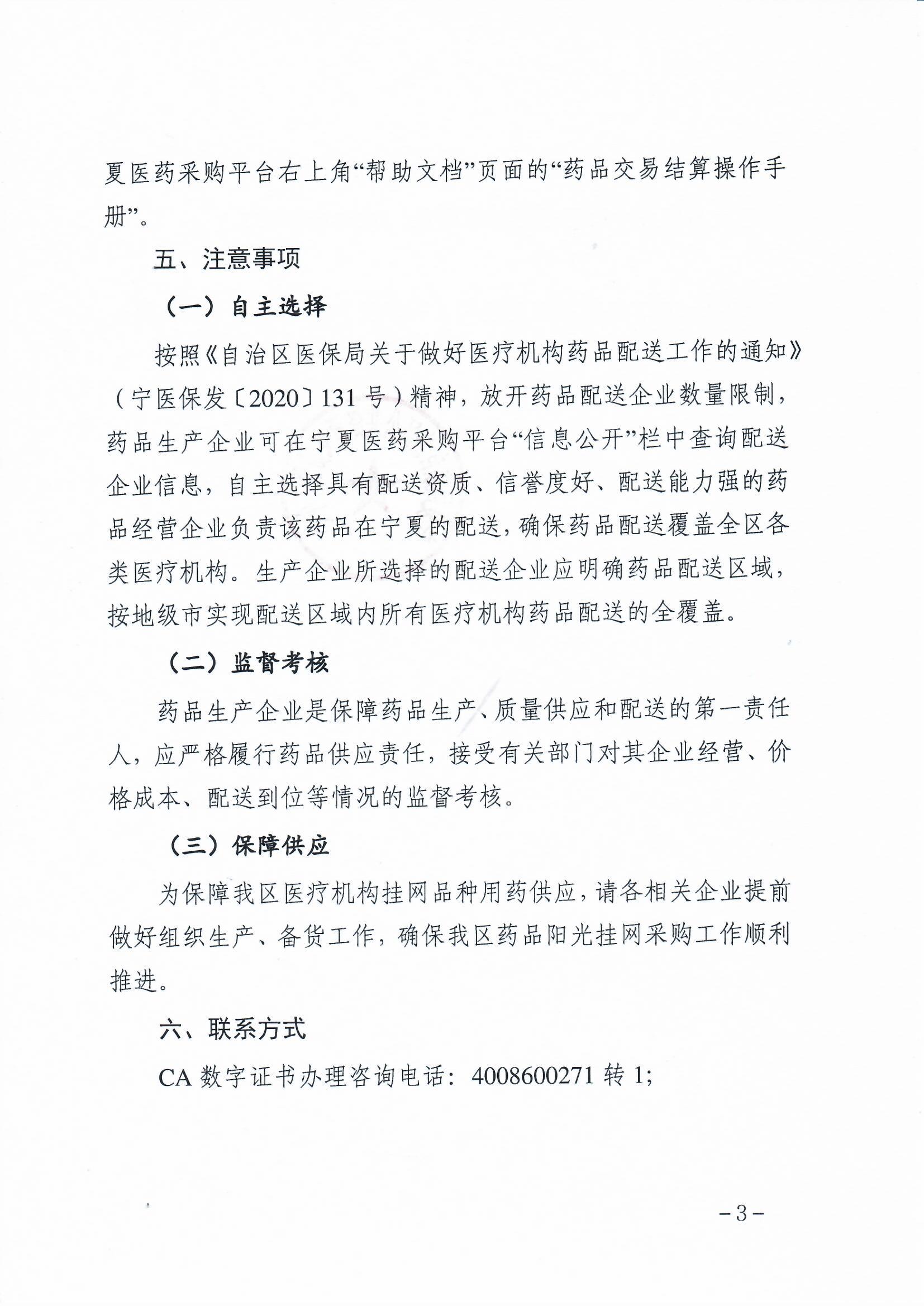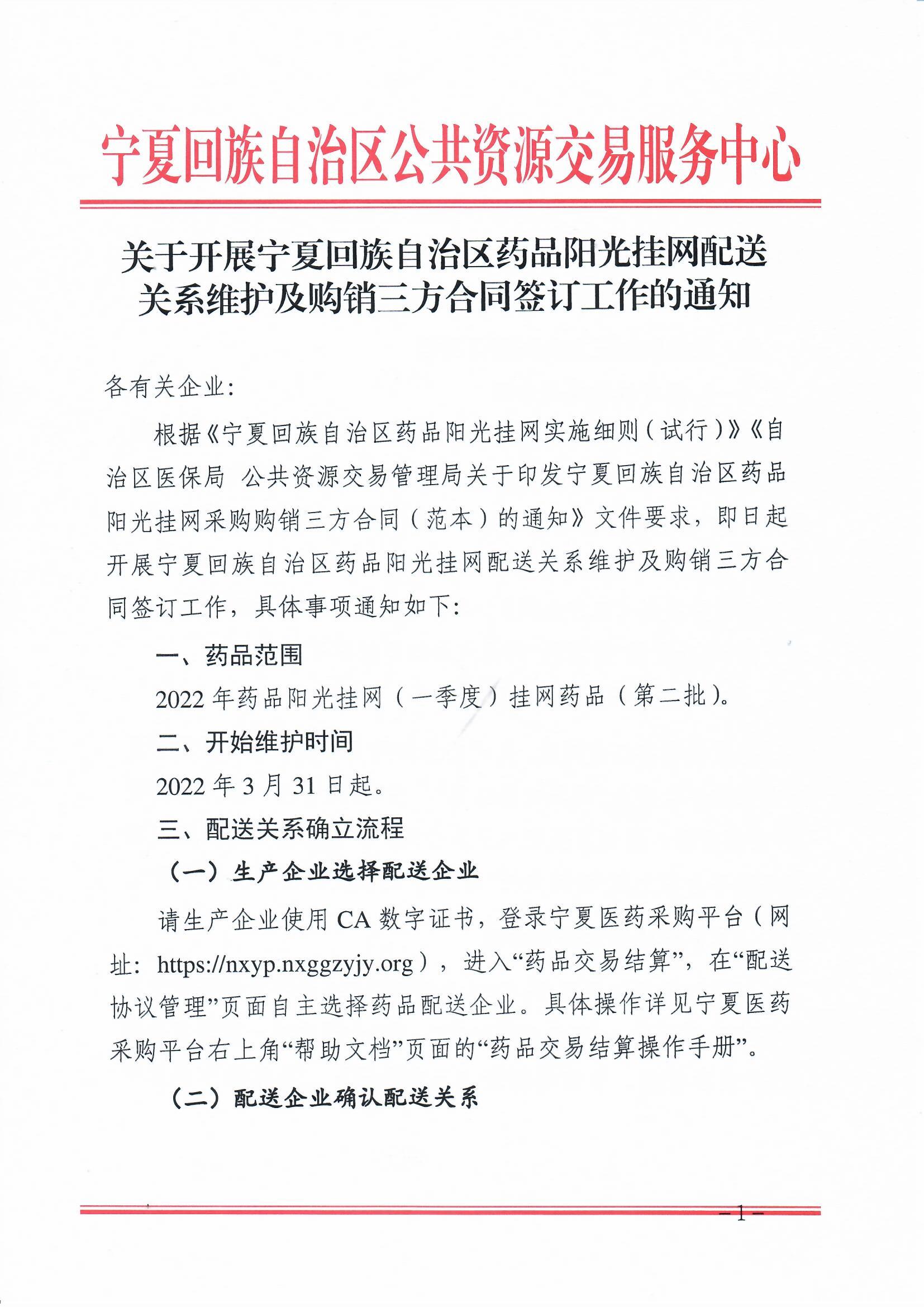 【宁夏】关于开展宁夏回族自治区药品阳光挂网配送关系维护及购销三方合同签订工作的通知(20220331)