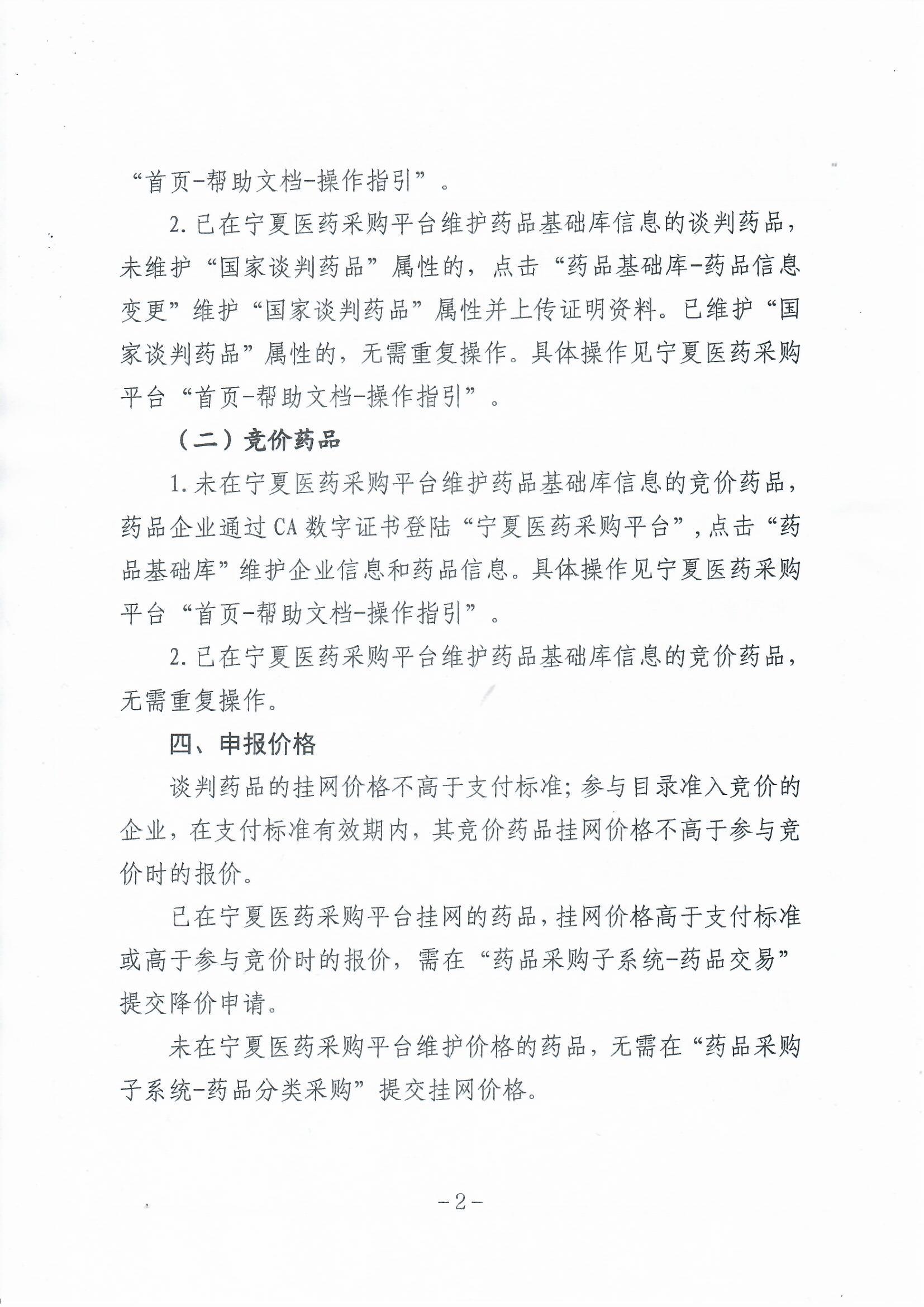 2.已在宁夏医药采购平台维护药品基础库信息的竞价药品,无需重复操作。