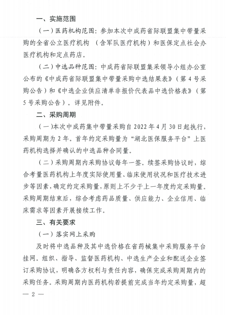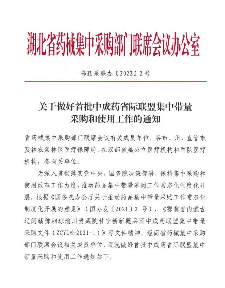 【湖北】湖北省关于做好首批中成药省际联盟集中带量采购和使用工作的通知