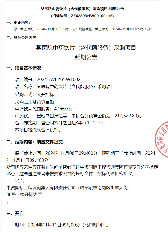 【军队采购】军队某医院中药饮片(含代煎服务)采购项目-延期公告