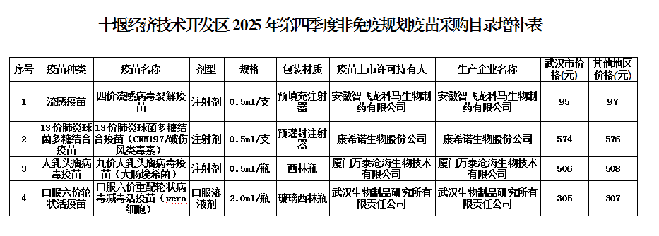 附件:十堰经济技术开发区2025年第四季度非免疫规划疫苗采购目录增补表