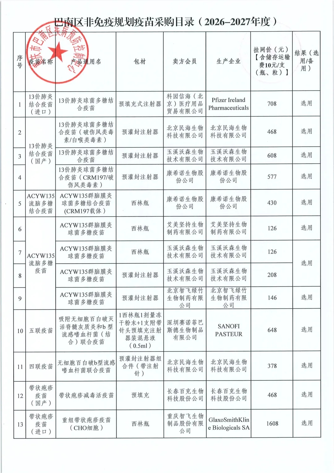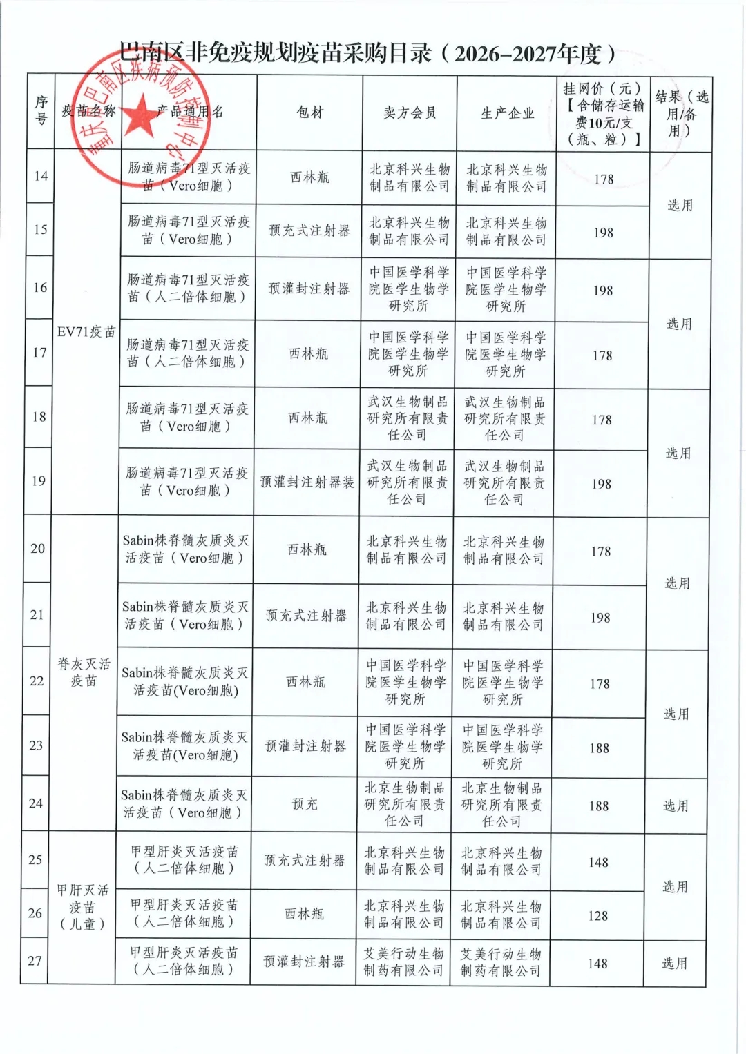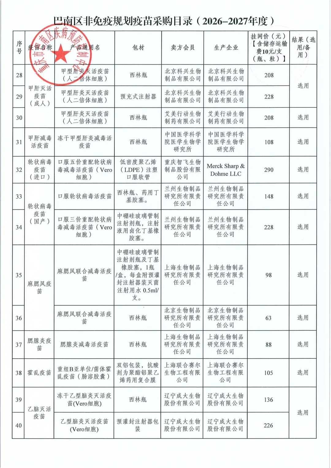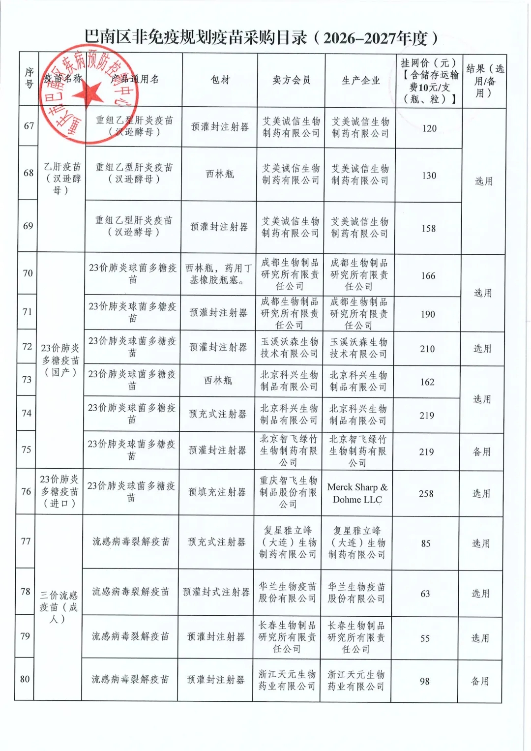 【重庆】关于巴南区2026-2027年度非免疫规划疫苗遴选结果的公示