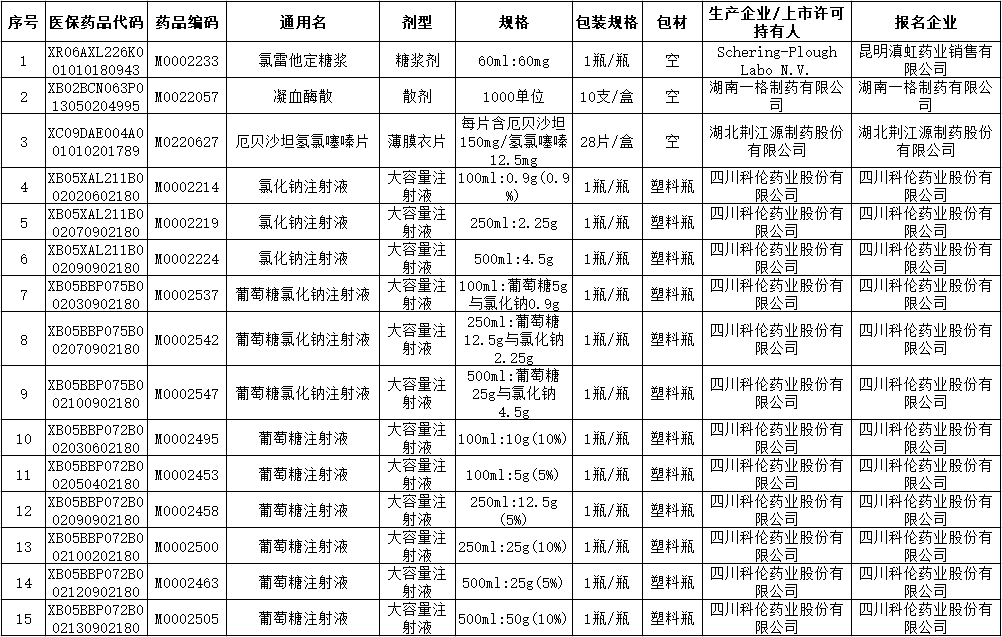 本次拟暂停挂网以下15个药品: