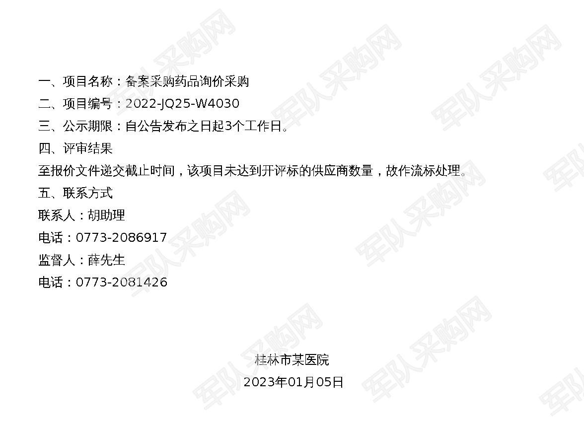 【军队采购】军队采购网备案采购药品项目流标公告(2022-JQ25-W4030)