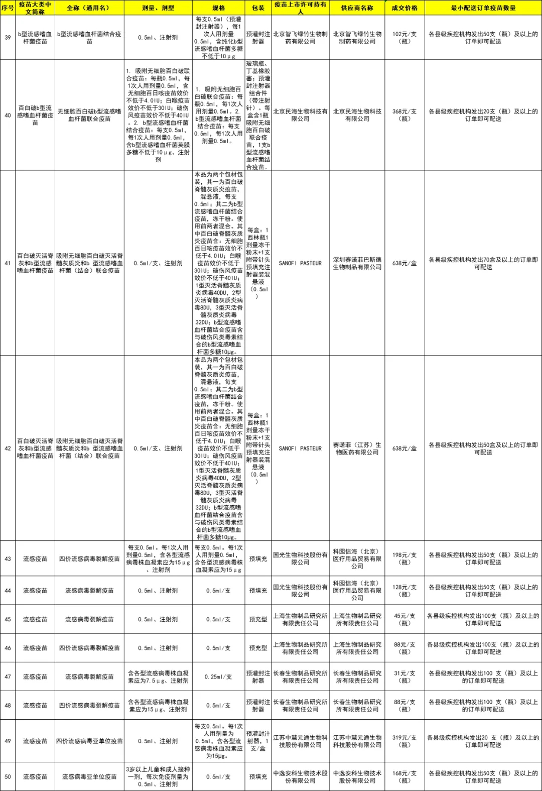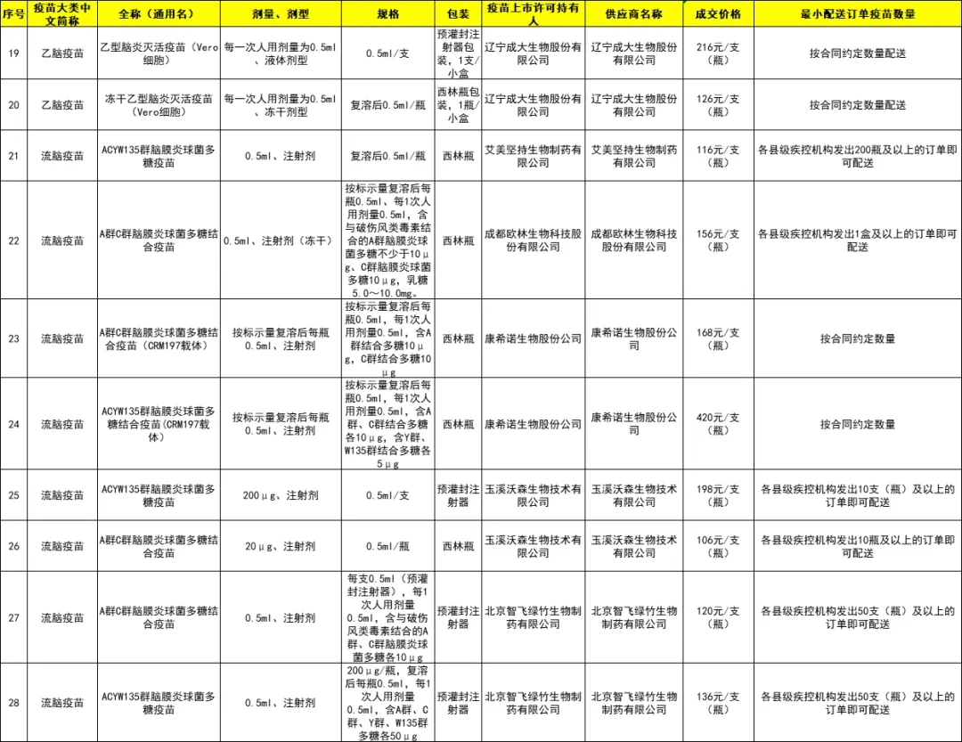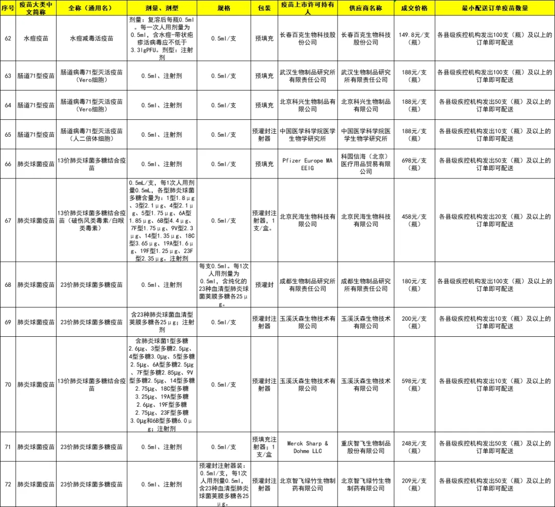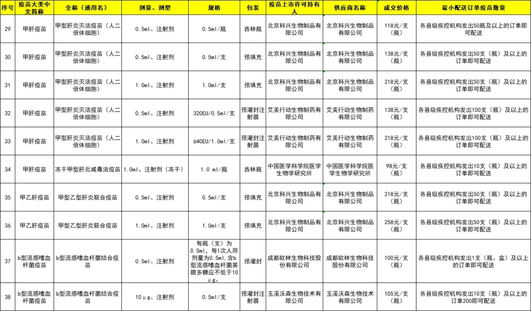 城厢区2024年非免疫规划疫苗成交品种遴选结果目录
