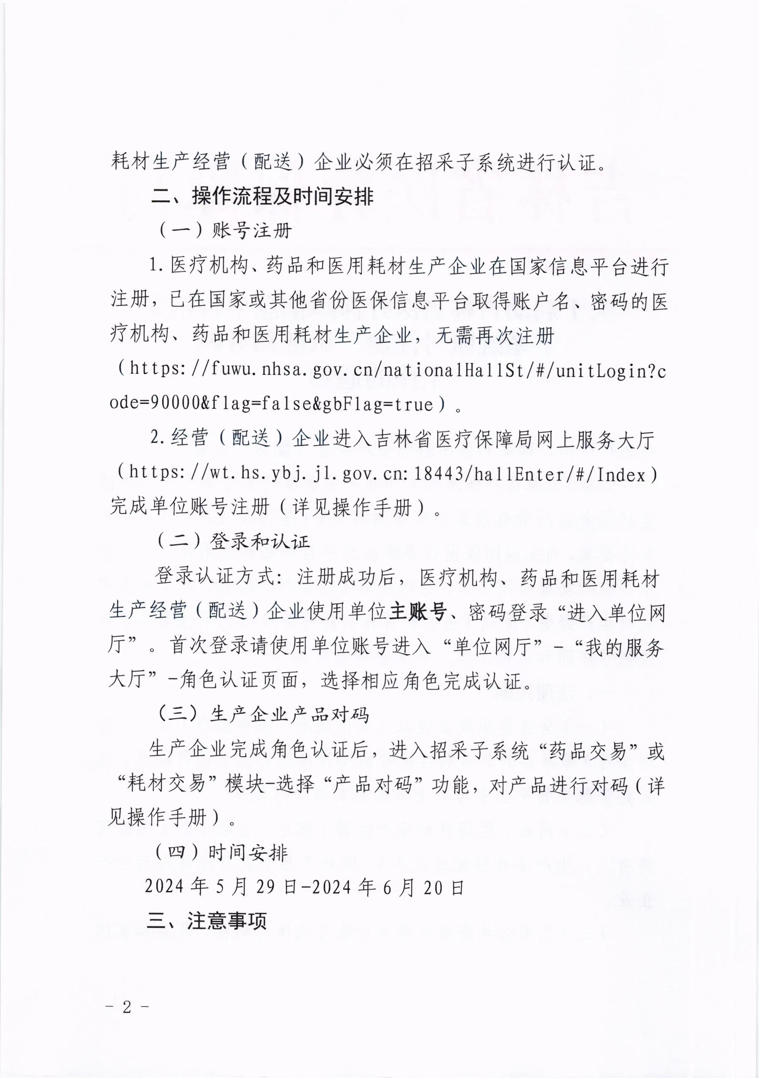 (二)请各医疗机构、药品和医用耗材生产经营(配送)企业按照时间节点要求完成相应工作,以免影响后期在吉林省医保信息平台招采子系统开展的药品和医用耗材产品网上采购工作。(三)请各医疗机构负责告知业务关联的相关药品和医用耗材生产经营(配送)企业按照本通知要求完成系统注册和认证工作,避免因未及时注册和认证工作,影响后续上线使用。