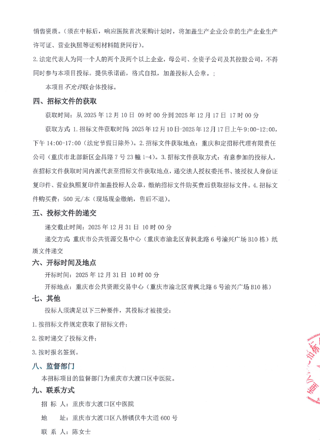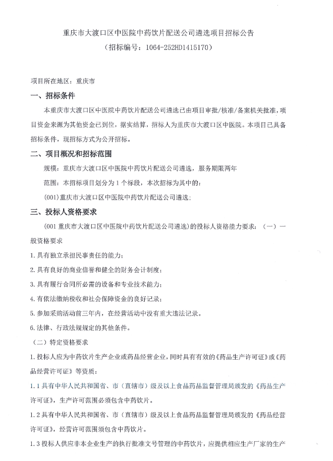 【重庆市大渡口区中医院】重庆市大渡口区中医院中药饮片配送公司遴选项目招标公告