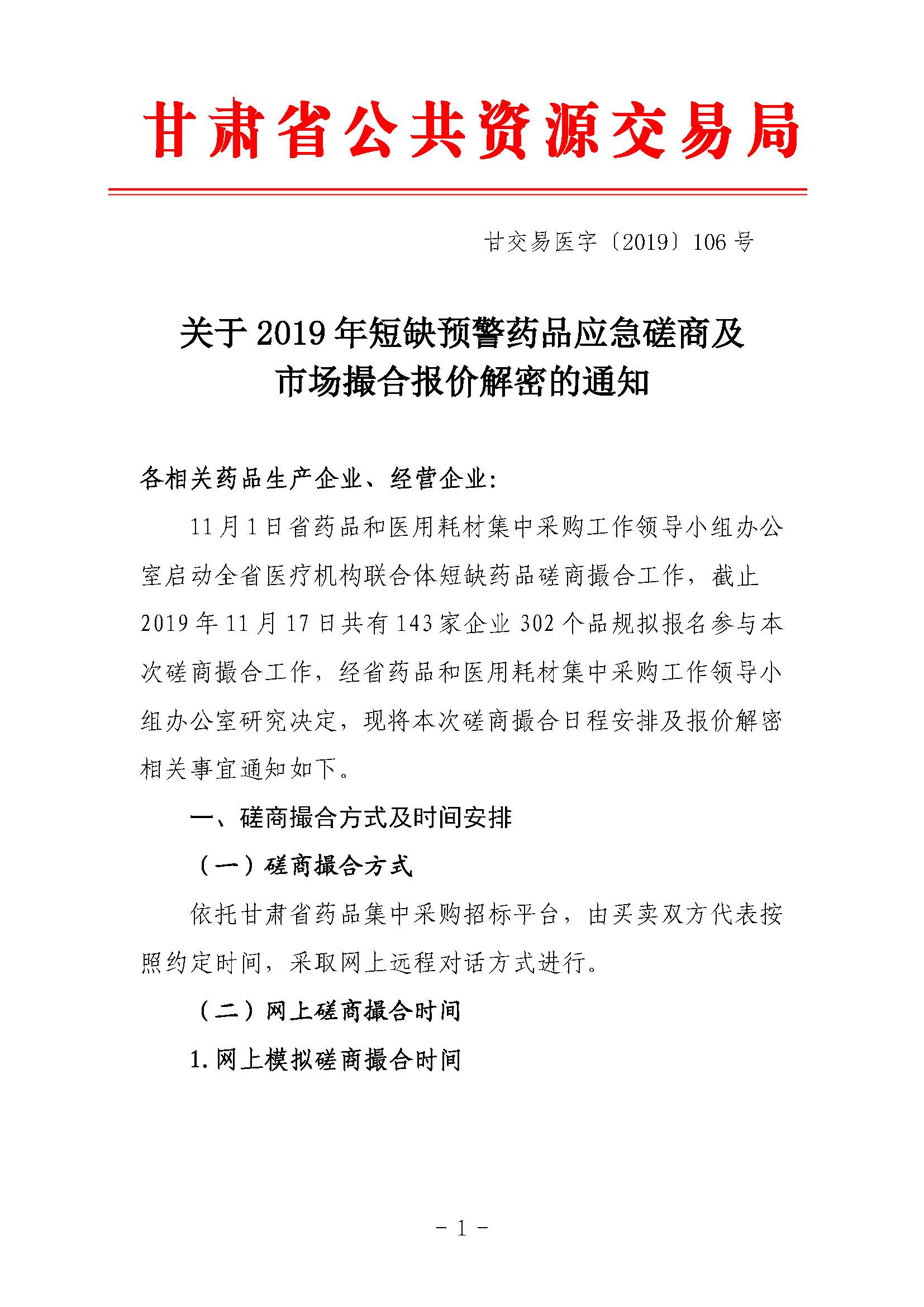 【甘肃】甘肃省关于2019年短缺预警药品应急磋商及市场撮合报价解密的通知