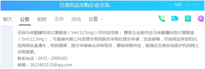【甘肃】甘肃省关于征询马来酸噻吗洛尔滴眼液(5ml:12.5mg)可供应信息