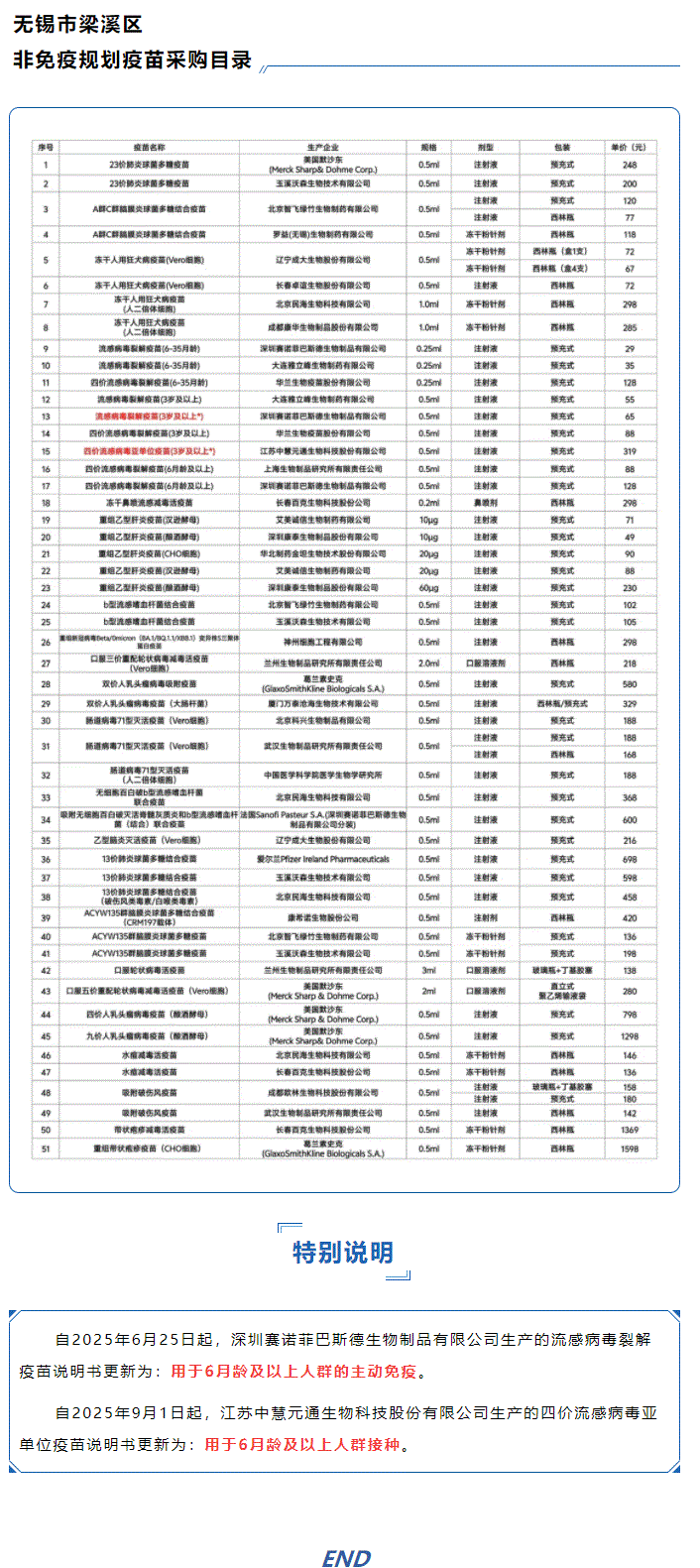 【无锡】无锡市梁溪区非免疫规划疫苗采购目录公示