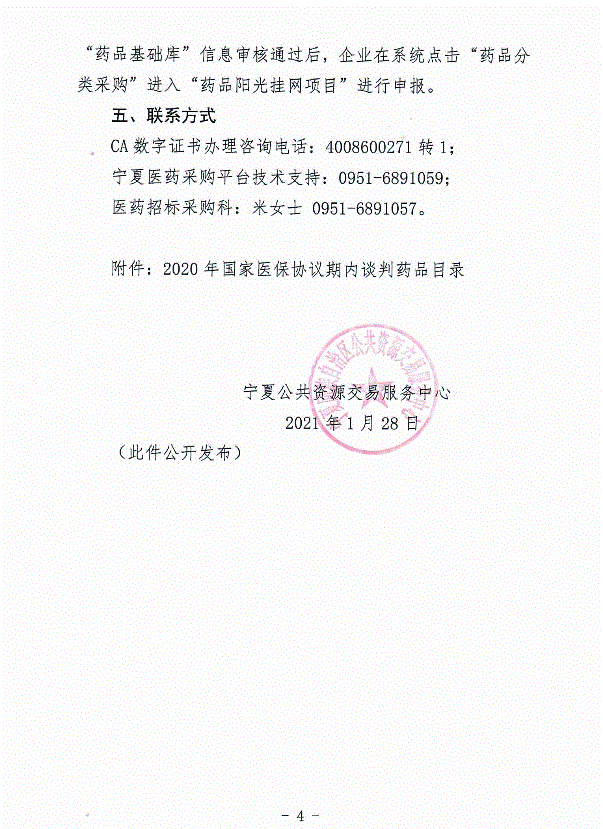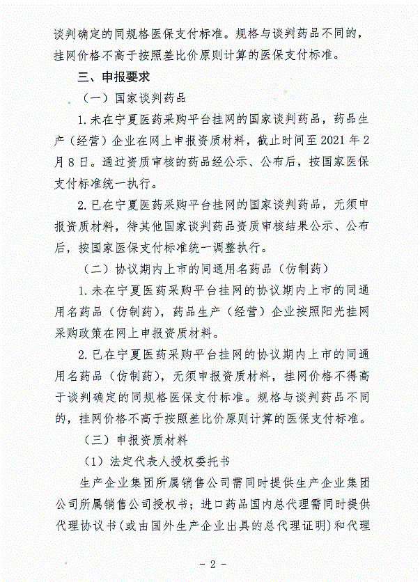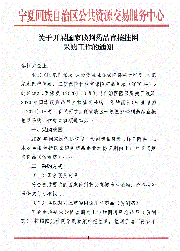 【宁夏】2021年宁夏自治区关于开展国家谈判药品直接挂网采购工作的通知