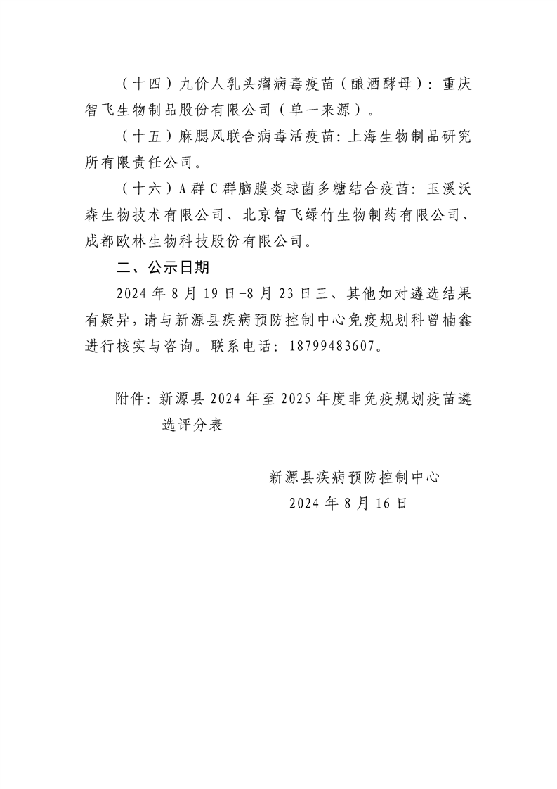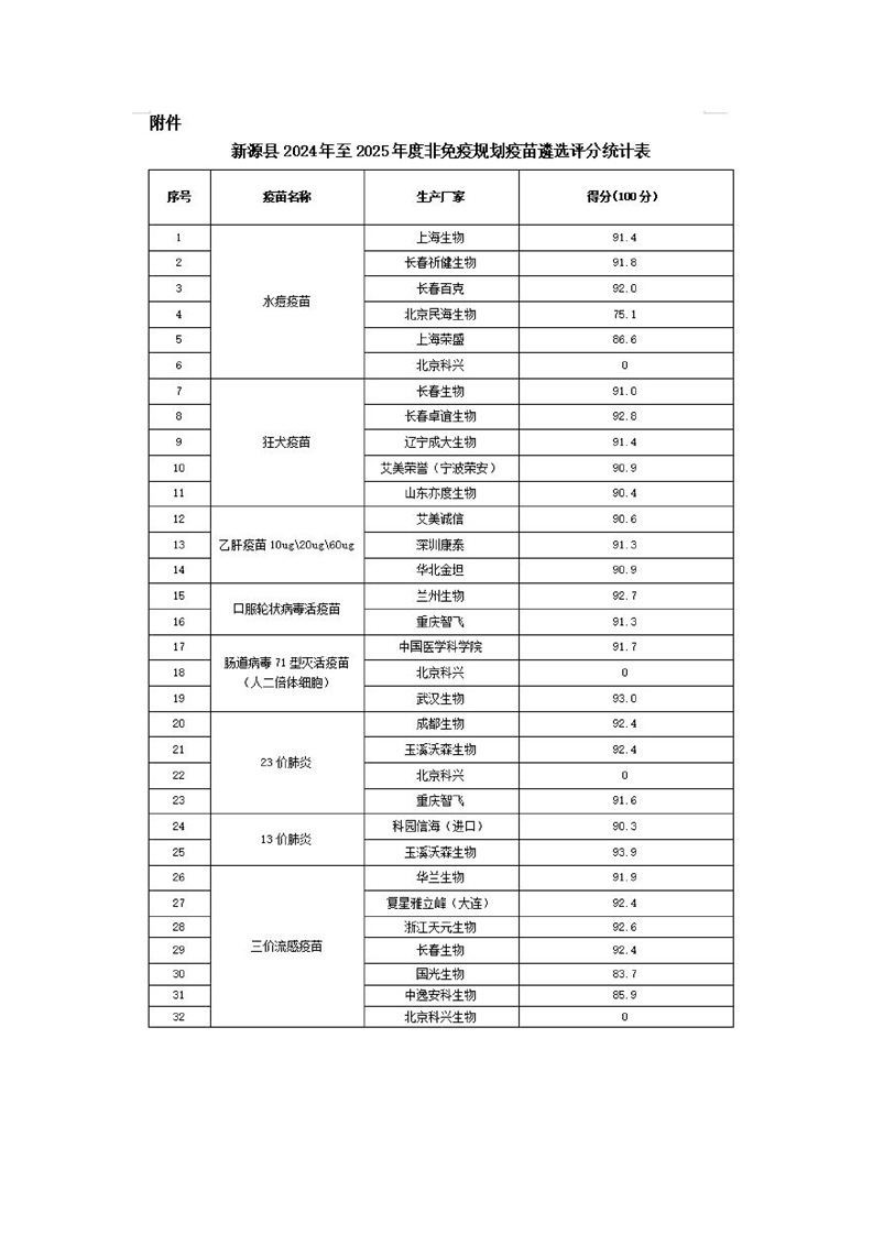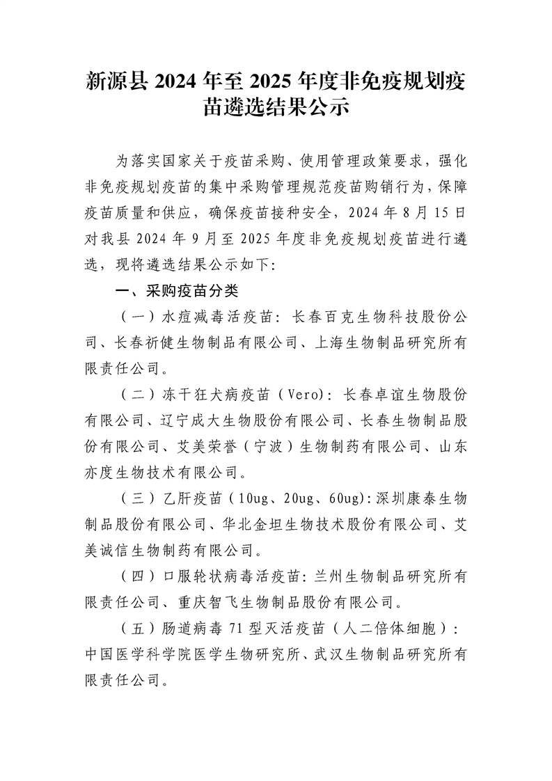 【伊犁】新源县2024年至2025年度非免疫规划疫苗遴选结果公示