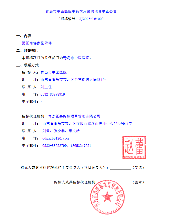 【青岛市中医医院】山东省青岛市中医医院中药饮片采购项目更正公告(20250919)