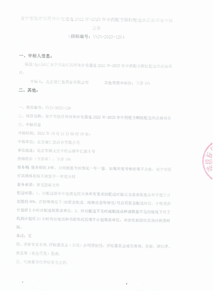 【云南省昆明市安宁市医疗共同体】补充遴选2022年-2025年中药配方颗粒配送供应商项目中标公告