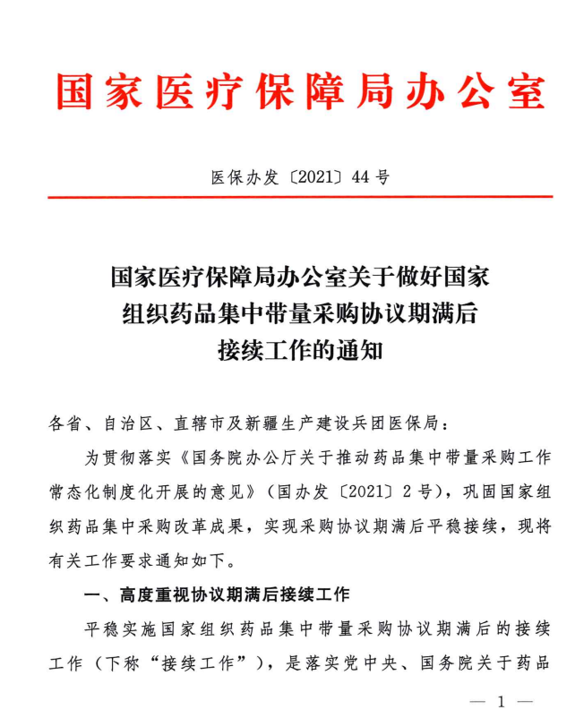 【河北】关于做好国家组织药品集中带量采购协议期满后接续工作的通知
