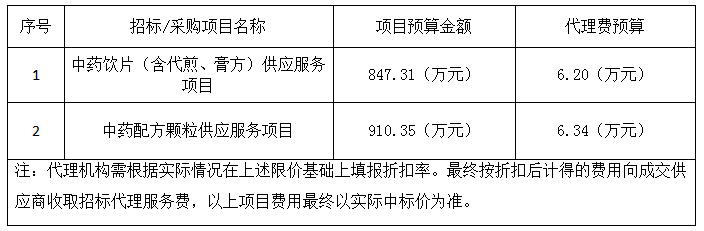 据根据医院相关管理规定和工作安排,我院计划采购代理机构完成中药饮片(含代煎、膏方)、中药配方颗粒供应服务招标代理工作,拟采购一家代理机构完成本项目采购工作。欢迎各符合条件的公司报名。
