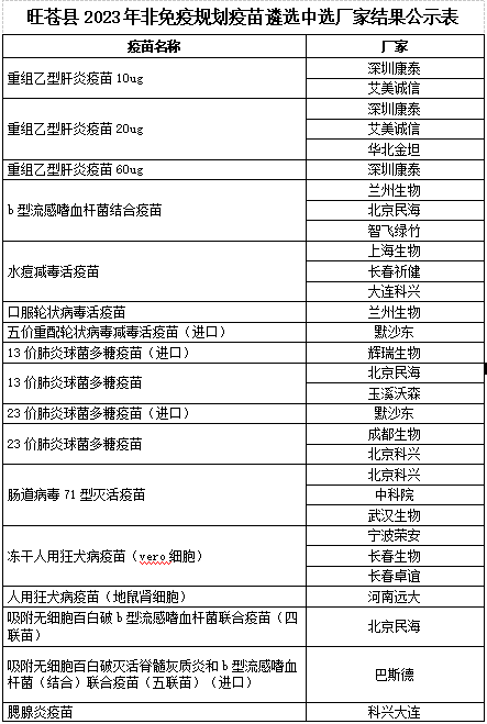 为进一步加强我县非免疫规划疫苗采购、供应工作,确保疫苗质量及预防接种安全, 根据《中华人民共和国疫苗管理法》和四川省卫生健康委员会《关于印发疫苗全程管理风险防控工作方案(2023年版)的通知》(川卫疾控函〔2023〕11号)等相关要求,我县于6月21日组织召开了旺苍县2023年非免疫规划疫苗遴选工作会议。遴选过程在县纪检部门的监督下,按照“公平、公正、公开”的原则,采取各接种单位代表无记名投票、现场计票、现场公布结果的方式进行,全程摄影录像。现将遴选结果公示如下(见附件),公示期为2023年6月22日至2023年6月28日。