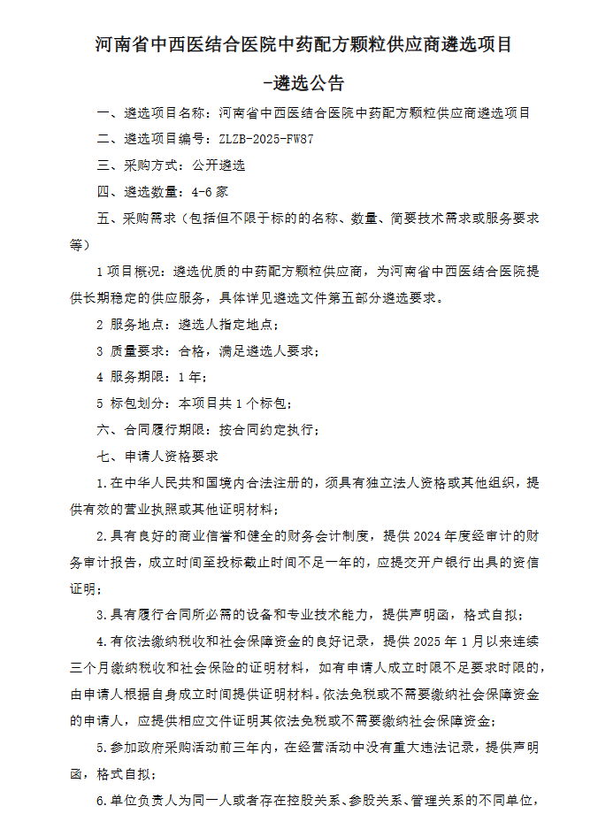 【河南省中西医结合医院】河南省中西医结合医院中药配方颗粒供应商遴选项目-遴选公告