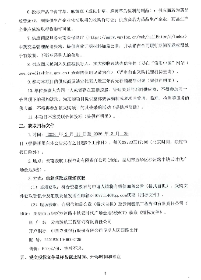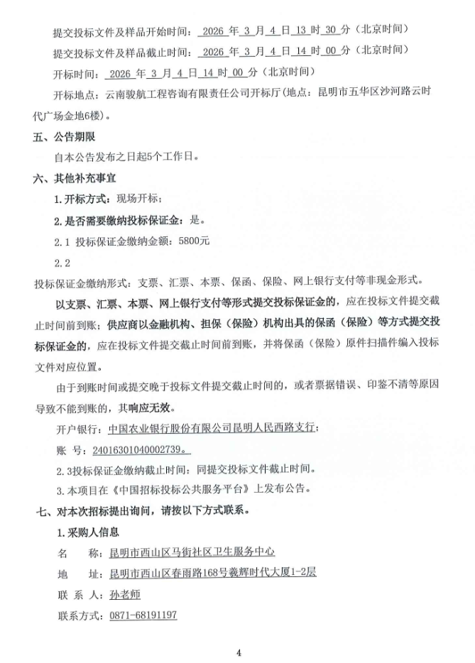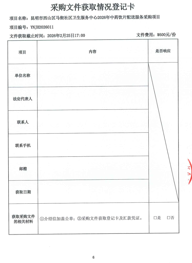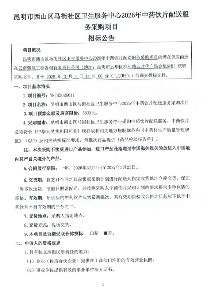 【昆明市西山区马街社区卫生服务中心】云南省昆明市西山区马街社区卫生服务中心2026年中药饮片配送服务采购项目招标公告