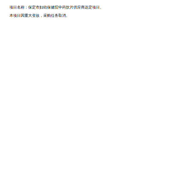 【保定市妇幼保健院】河北省保定市妇幼保健院中药饮片供应商选定项目终止公告