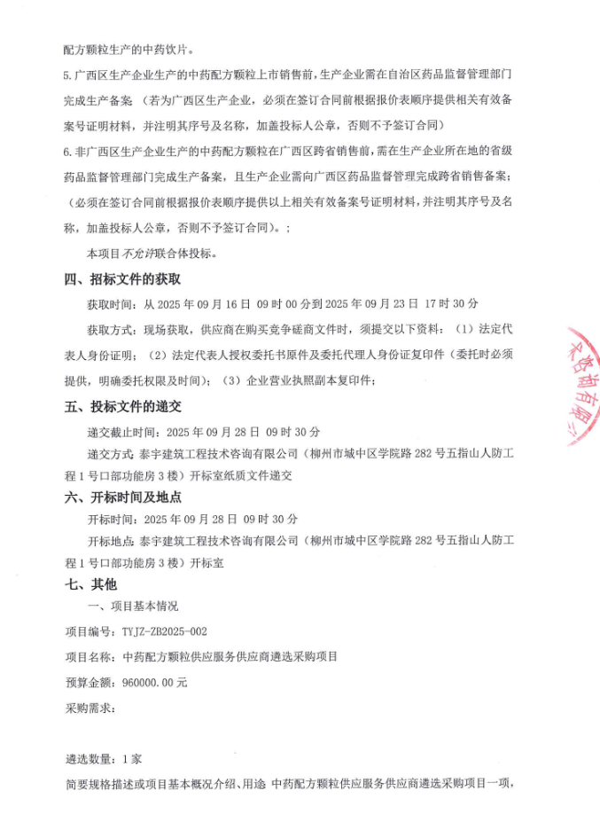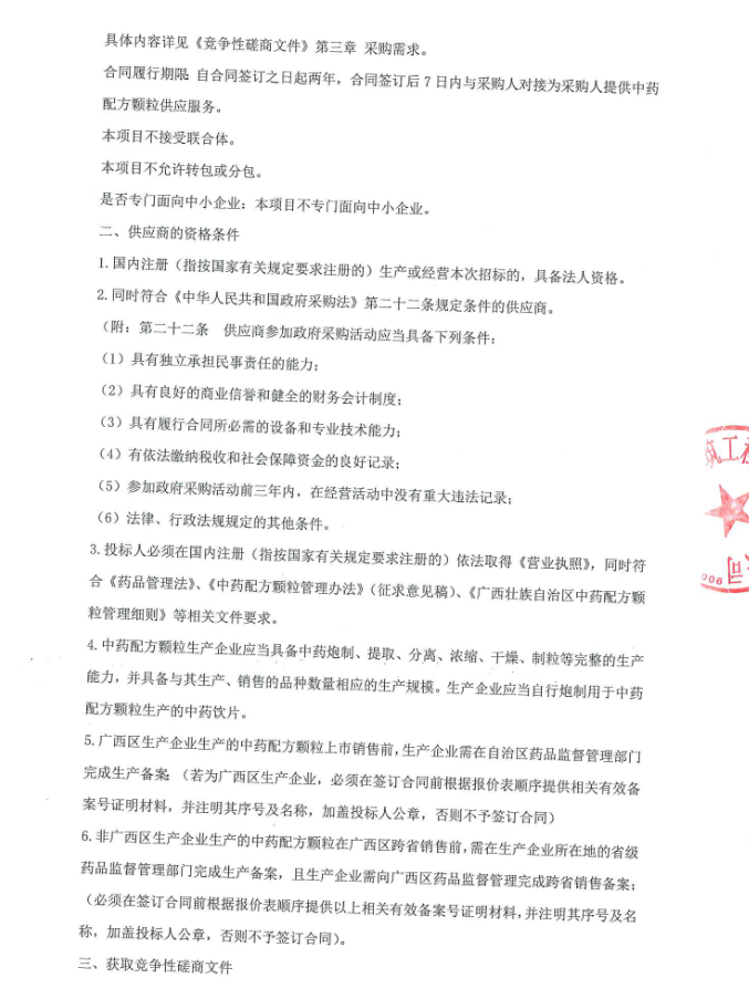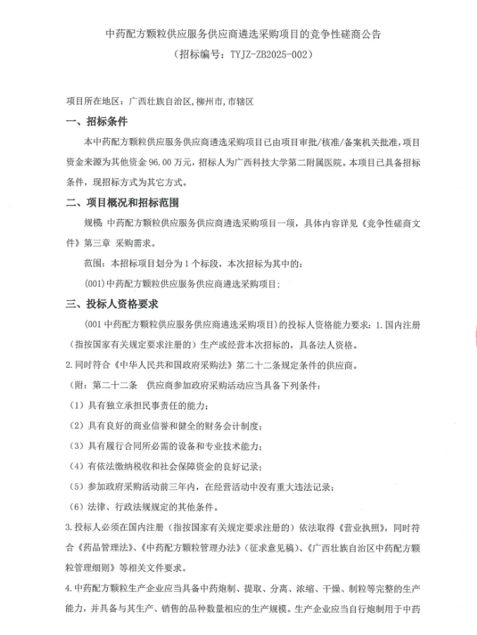 【广西科技大学第二附属医院】广西科技大学第二附属医院中药配方颗粒供应服务供应商遴选采购项目的竞争性磋商公告