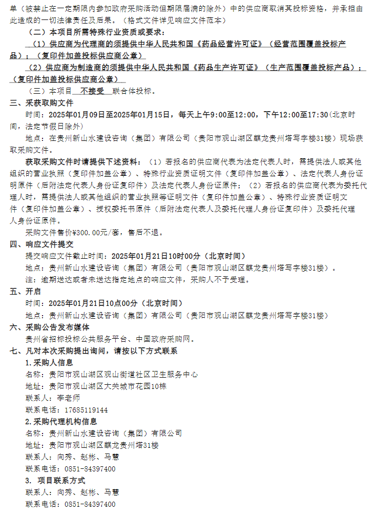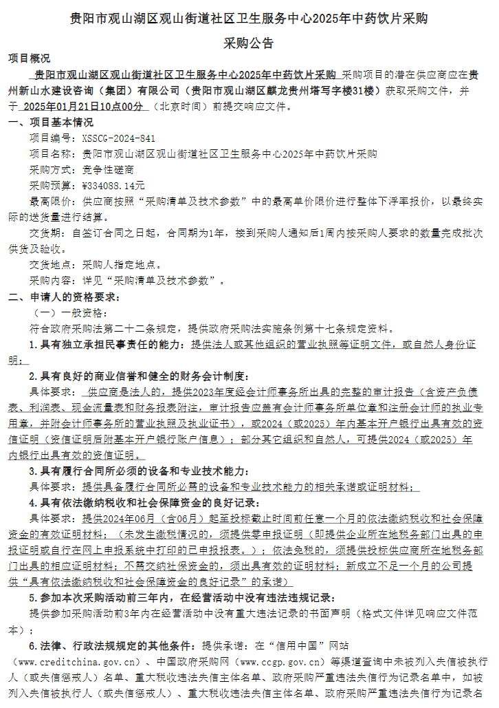 【贵阳市观山湖区观山街道社区卫生服务中心】贵州省贵阳市观山湖区观山街道社区卫生服务中心2025年中药饮片采购采购公告