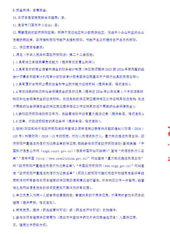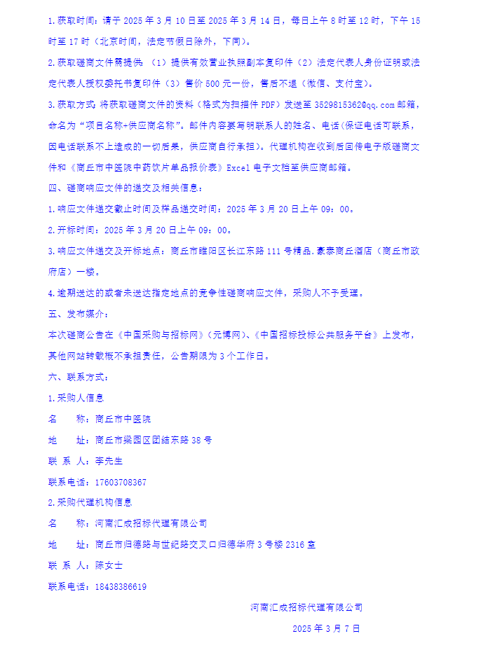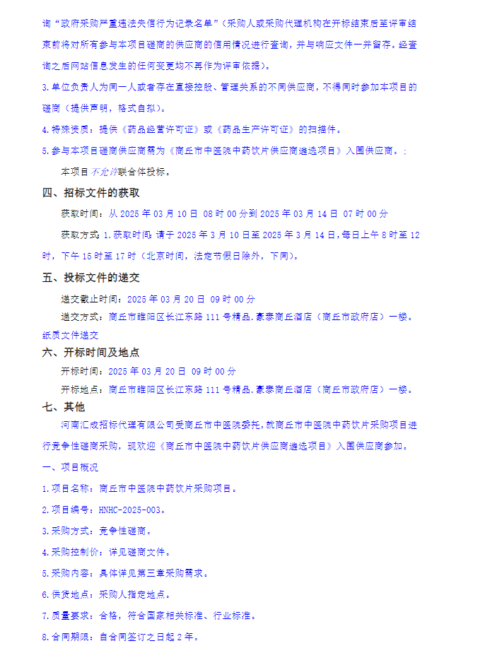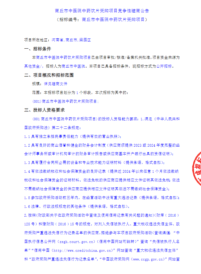 【商丘市中医院】河南省商丘市中医院中药饮片采购项目竞争性磋商公告