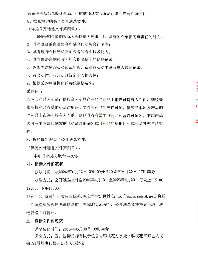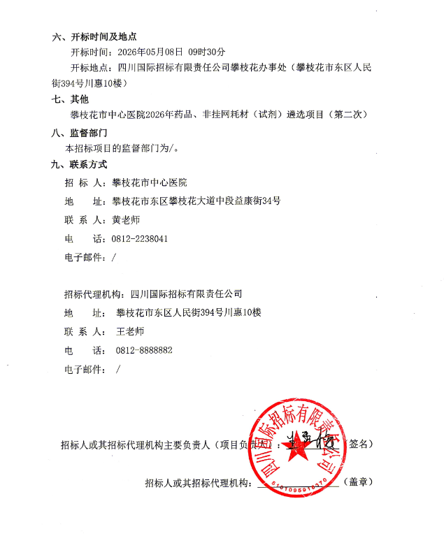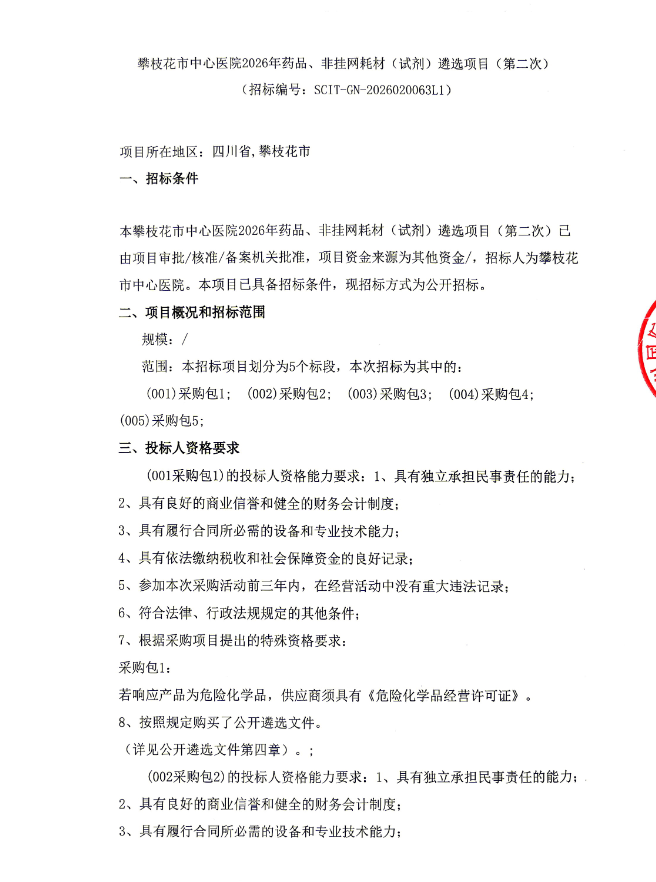 【攀枝花市中心医院】四川省攀枝花市中心医院2026年药品、非挂网耗材(试剂)遴选项目(第二次)