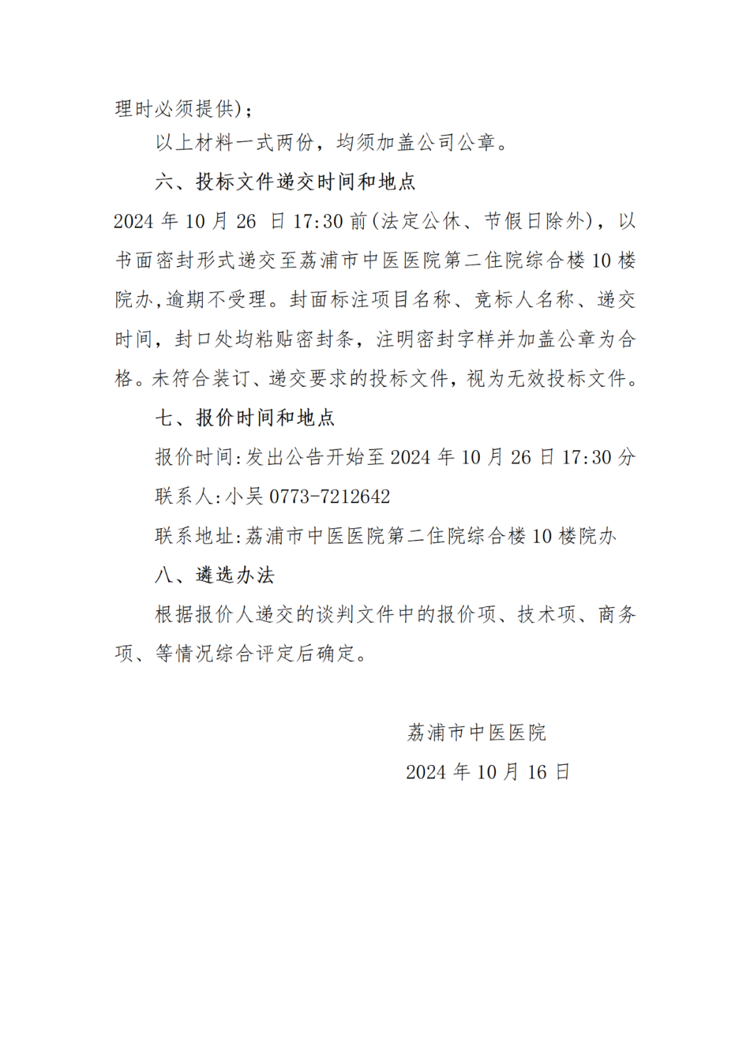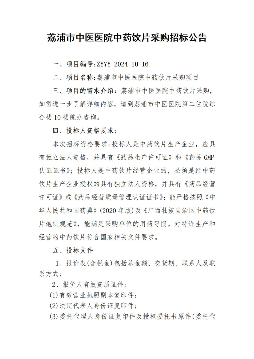 【桂林市荔浦市中医医院】广西壮族自治区桂林市荔浦市中医医院中药饮片采购招标公告