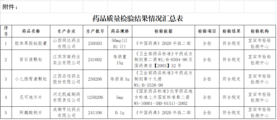 【宜宾】宜宾市公立医疗机构集中议价采购药品第一批次质量抽查检验结果公告