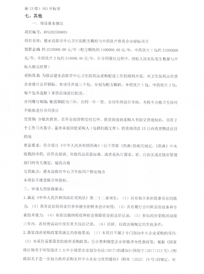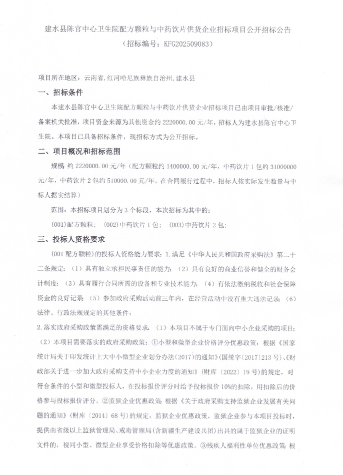 【红河哈尼族彝族自治州建水县陈官中心卫生院】云南省红河哈尼族彝族自治州建水县陈官中心卫生院配方颗粒与中药饮片供货企业招标项目公开招标公告