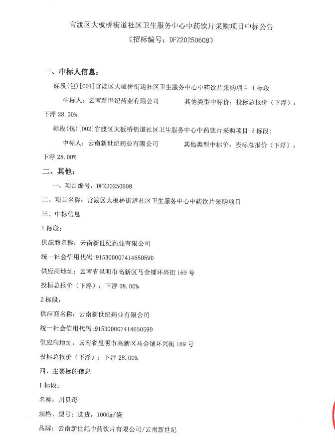 【昆明市官渡区大板桥街道社区卫生服务中心】云南省昆明市官渡区大板桥街道社区卫生服务中心中药饮片采购项目中标公告