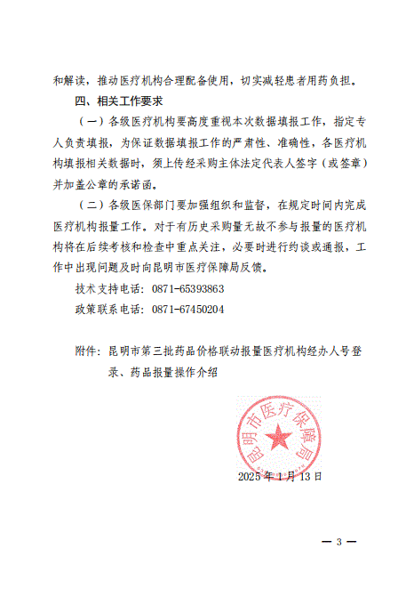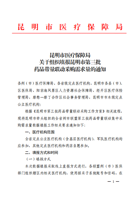 【昆明】云南省昆明市医疗保障局关于组织填报昆明市第三批药品带量联动采购需求量的通知