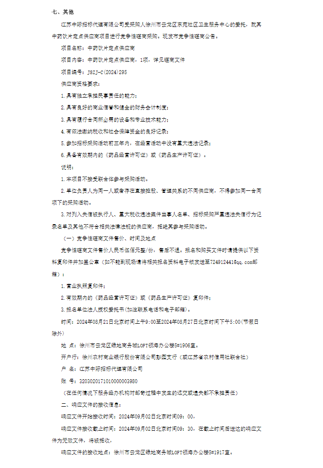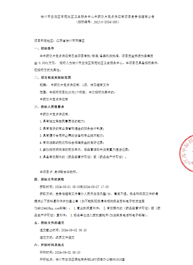 【徐州市云龙区东苑社区卫生服务中心】江苏省徐州市云龙区东苑社区卫生服务中心中药饮片定点供应商项目竞争性磋商公告
