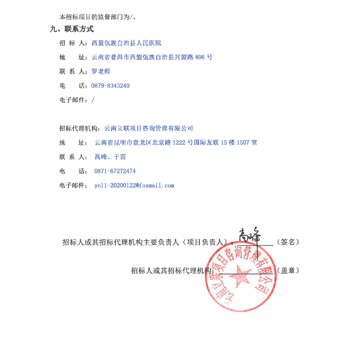 所属项目:云南省普洱市西盟佤族自治县人民医