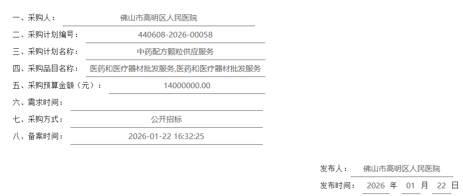 【佛山市高明区人民医院】广东省佛山市高明区人民医院中药配方颗粒供应服务