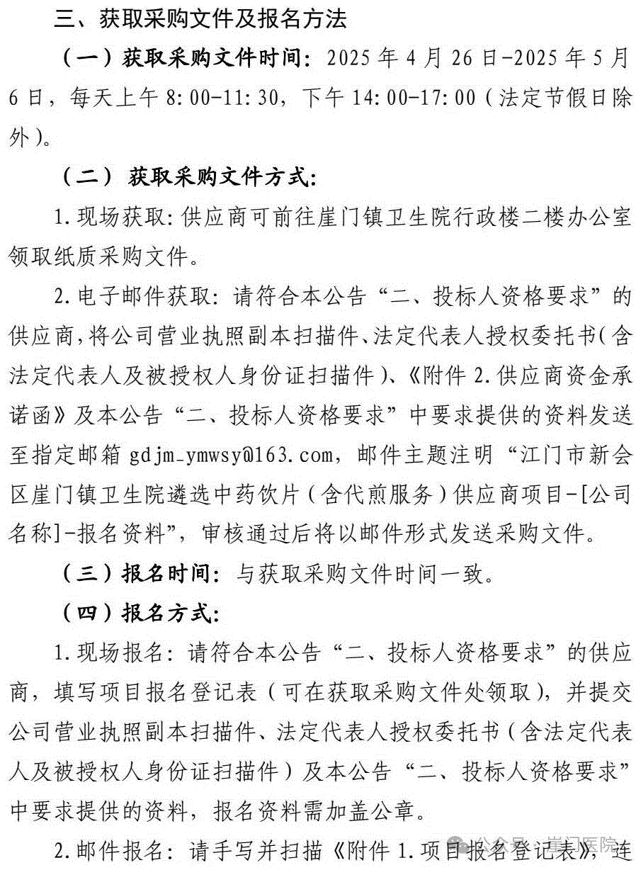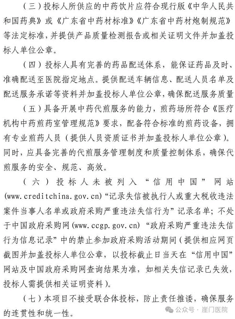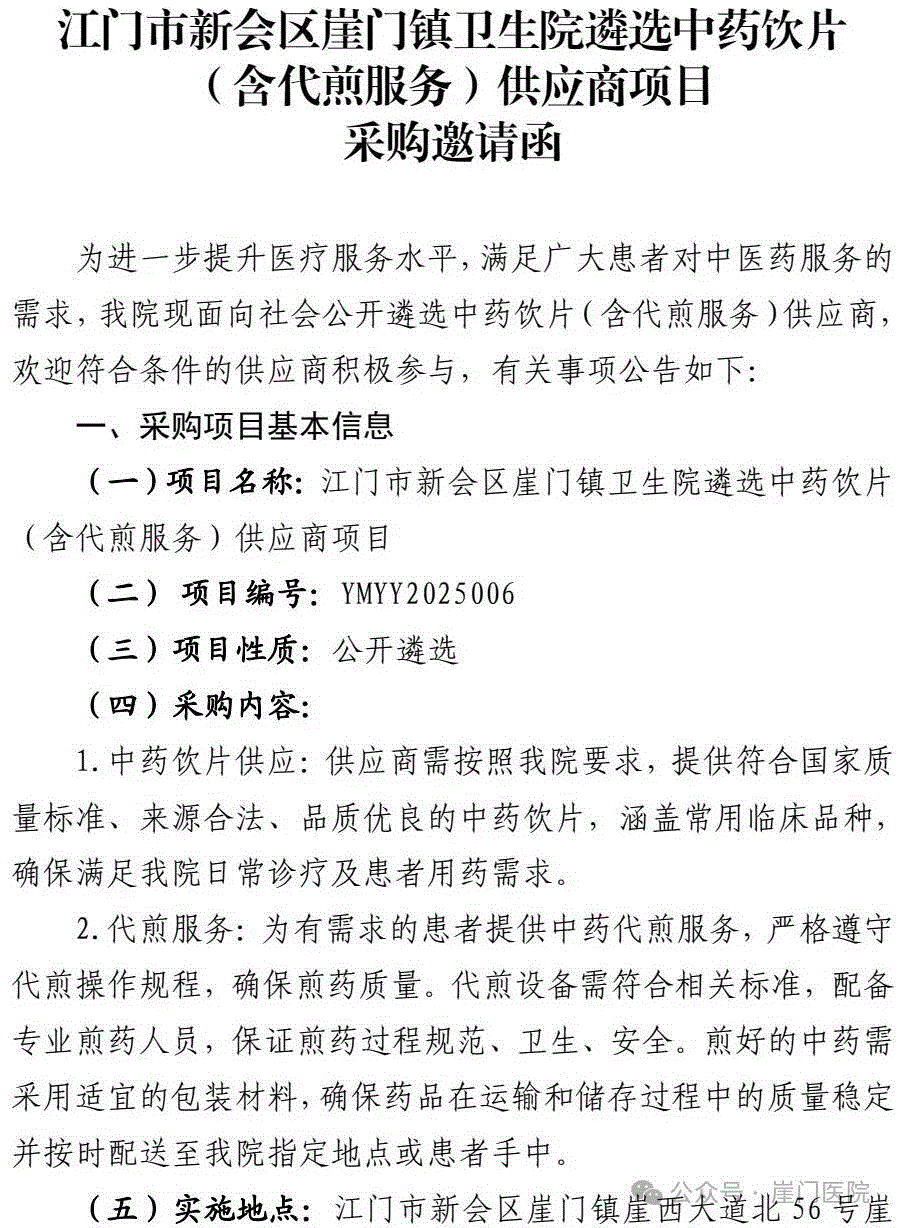 【江门市新会区崖门镇卫生院】广东省江门市新会区崖门镇卫生院遴选中药饮片(含代煎服务)供应商项目采购邀请函