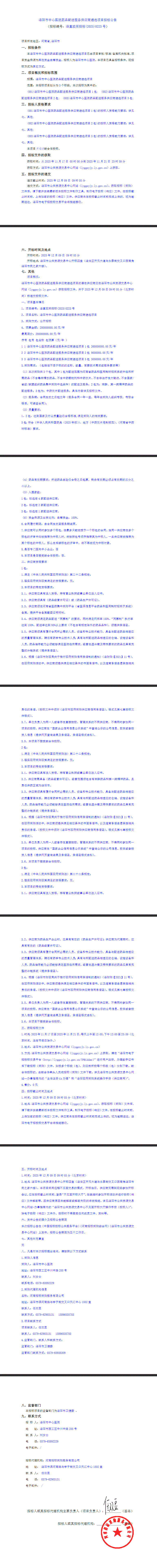 【洛阳市中心医院】河南省洛阳市中心医院药品配送服务供应商遴选项目招标公告